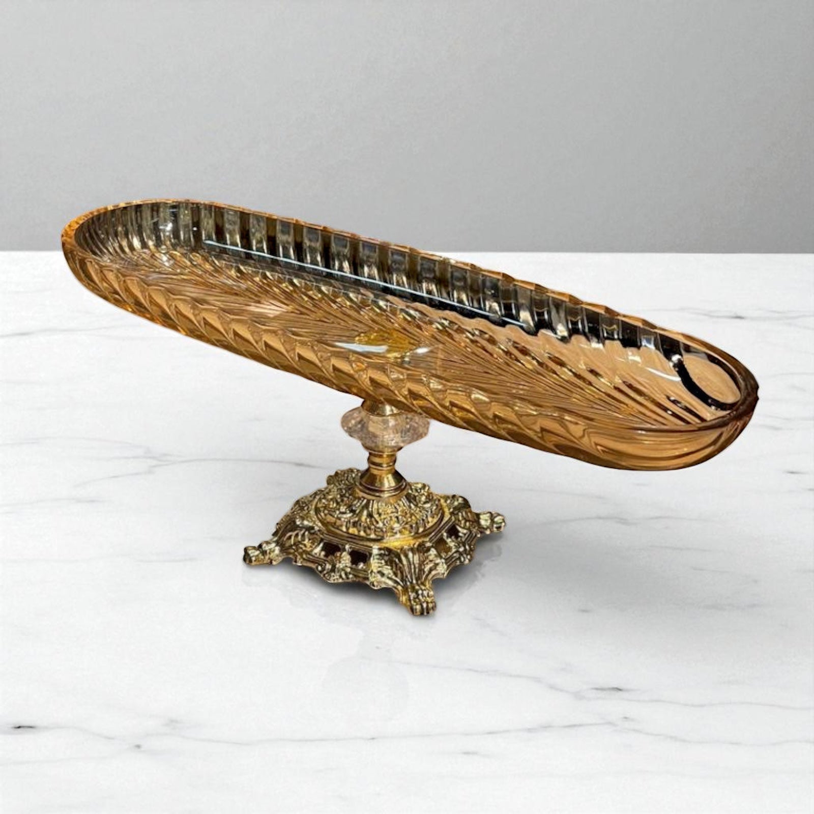 Özel olarak işlenmiş kristal cam gövdesi ve Osmanlı esintili altın renkli ayak detayıyla, kız isteme, nişan ve misafir ağırlama gibi özel anlarınız için kusursuz bir tamamlayıcı.
